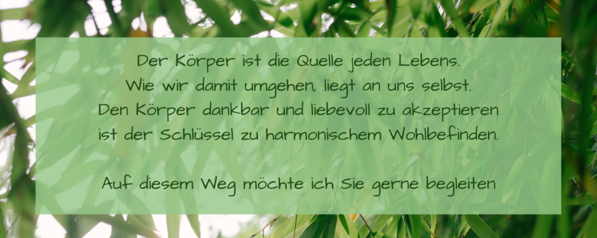 Im Mittelpunkt meiner Arbeit steht ein ganzheitlicher Ansatz, der die Wechselwirkung zwischen Körper und Geist in Betracht zieht. Dies soll einer nachhaltigen Stabilisierung des gesundheitlichen Zustands dienen.